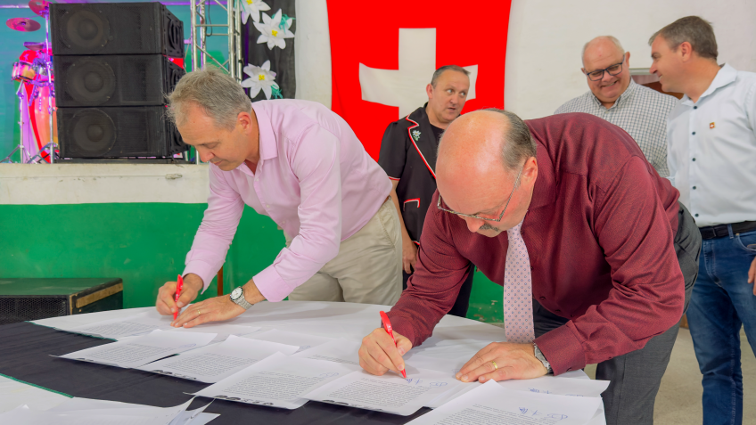 Este fin de semana, en el marco de la XXX Fiesta Regional Suiza realizada en el Club Ciclón Norte de Cayastá, se llevó a cabo un emotivo acto en el que se reafirmó el hermanamiento entre las localidades de Cayastá, Helvecia y Romang con la comunidad de Trubschachen, Suiza.